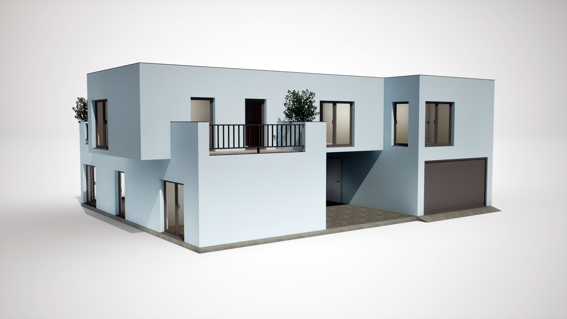 Virtual-Reality-3D-Modell eines Zweifamilienhauses für Visualisierung und interaktive Anwendungen im FBX-Format mit Texturen. Die Innenarchitektur besteht aus 11 Räumen mit Türen und Treppenhaus.